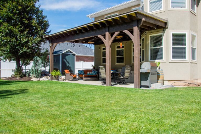 A pergola has an open roof with spaced beams, offering partial shade and a decorative touch. A patio cover is solid and provides full protection from sun and rain. Pergolas are great for those who want a stylish, open-air feel with some sun filtering through.